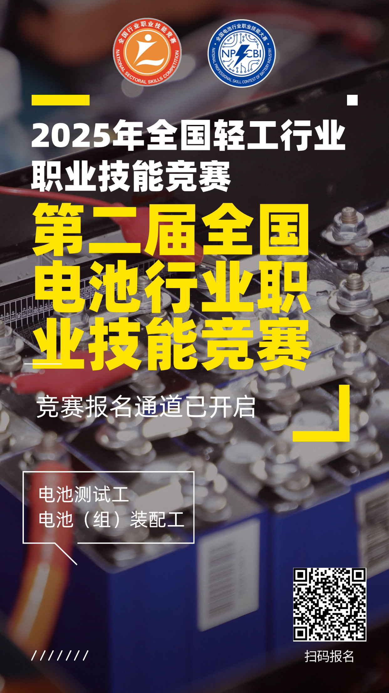 新能源产业技能巅峰对决即将上演!2025 年全国轻工行业职业技能竞赛 —— 第二届全国电池行业职业技能竞赛已正式启动,其中电池测试工、电池(组)装配工赛项全国总决赛将于 11 月底盛大开赛。作为由中国电池工业协会主办的国家级重磅赛事,本届大赛正面向全国公开征集承办场地,一场关乎行业荣誉与资源机遇的争夺战已然打响。 赛事三大核心亮点抢先看亮点一:世赛标准接轨,技能水平国际对标 本届大赛延续高规格办赛理念,优先遴选具备专业办赛能力的单位(含世界技能大赛相关基地、行业内有突出贡献单位)承办,赛事技术标准深度对接国际技能竞赛体系。竞赛内容涵盖电池性能综合测评、系统调试等核心技能模块,采用与国际接轨的技术文件体系,全面考验选手专业素养与创新能力,既提升赛事权威性,也助力承办单位技能培养体系向国际前沿看齐。 亮点二:以赛促产融合,聚焦产业真实需求 大赛紧密围绕新能源电池产业发展实际需求设置赛项,直接对应企业生产关键环节。参考往届赛事经验,参赛队伍围绕电池制造、检测等核心技能展开角逐,涌现的技术革新成果可直接反哺企业生产,切实推动产业技术升级与技能标准优化,实现 “以赛赋能产业” 的办赛目标。 亮点三:公平公正护航,打造技能人才晋升通道 大赛秉持 “以赛促学、以赛促训” 理念,建立严格的裁判培训与赛事监督机制,全程参照全国轻工行业竞赛标准执行。对获奖选手开放职业技能等级晋升通道,优胜选手可直接晋升高级工职业技能等级,为承办单位培养、储备高技能人才提供优质平台,助力人才梯队建设。 承办单位将收获这些黄金机遇成为本届大赛承办单位,将解锁多重发展红利: 行业影响力跃升承办单位将获 “大赛联合承办单位” 官方认证,依托国家级赛事平台实现品牌曝光最大化。赛事期间汇聚全国电池行业精英企业、顶尖院校及权威专家,承办单位可充分展示专业建设成果与技能人才培养实力,显著提升在新能源领域的行业认可度与话语权。 政校企资源深度整合借赛事契机搭建产业合作桥梁,吸引行业龙头企业关注,为后续产学研合作、实习就业基地建设、技术联合研发等奠定基础,推动资源高效对接与协同发展。 长效发展能力提升承办过程中积累的赛事组织、技能评价经验,可助力单位申请技能等级认定资质,获取更多政策支持。 在总决赛工作中,组织工作成绩突出的单位,将由竞赛组委会颁发“优秀组织单位”荣誉证书。根据轻工行业竞赛惯例,承办单位在高技能人才培养、职业技能培训等工作中可获得政策倾斜,同时赛事锤炼的专业团队将成为单位长期发展的核心竞争力。 申报通道已开启,截止倒计时启动有意向的技工院校、职业院校及行业企业需注意:申报材料提交截止日期为 2025 年 10 月 15 日。申请单位需填写承办申请表,详细说明场地设施条件、人员保障方案、经费预算规划等关键信息。有意申请单位,请扫描下方二维码咨询参与。