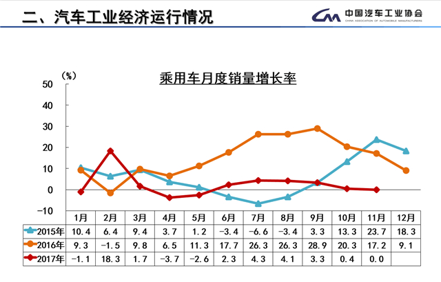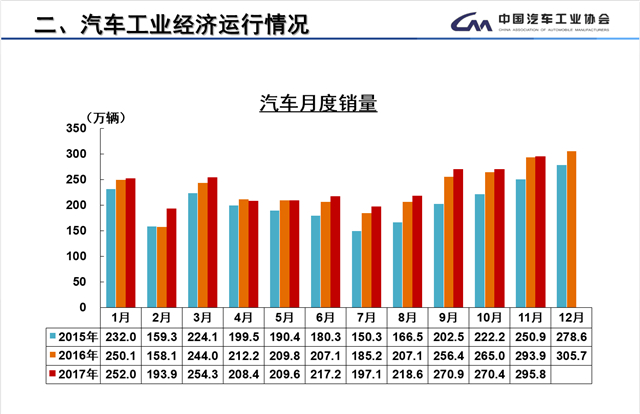 “对于今年的增速目标,其实去年在长沙的预测会议上,我们就提出两个看法,如果今年国家小排量乘用车购置税优惠政策不退出,我们预计增速有可能达到6%,如果政策退出,我们的预计是2%。”事实上,在2016年12月国家财政部宣布继续实行减征1.6L以下排量乘用车车辆购置税的政策,政策显示自2017年1月1日起至12月31日止,对购置1.6升及以下排量的乘用车减按7.5%的税率征收车辆购置税,自2018年1月1日起,恢复按10%的法定税率征收车辆购置税。许海东表示:“2015年和2016年的4季度销量都非常好,主要是受此政策的影响。但随着政策边际效应的减弱,政策发挥的作用不是很大,从结果上来看,今年4季度增速表现平平。”