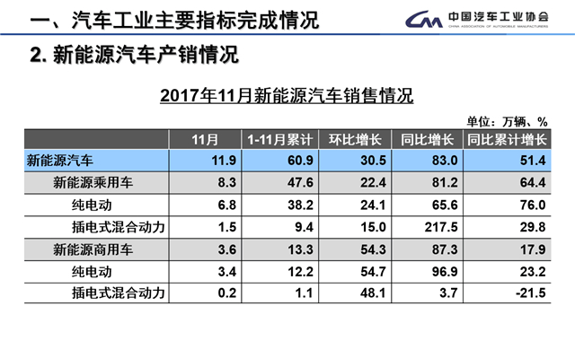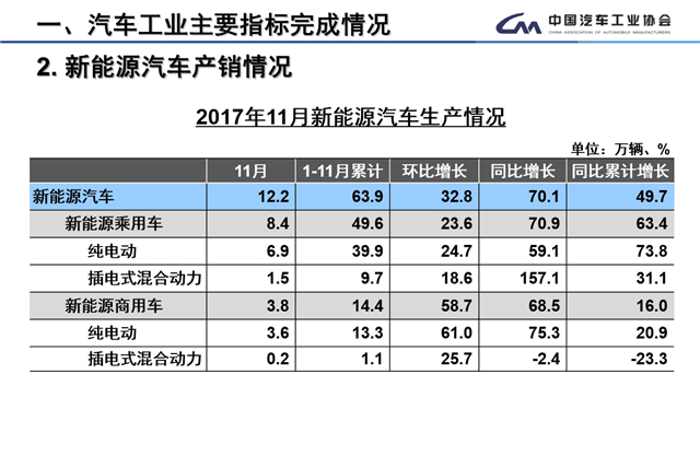 数据显示,今年前11个月新能源车型的产销规模均取得较高水平,11月单月的产销均超过10万辆,其中销量达到11.9万辆,新能源乘用车的月度销量为8.3万辆。1~11月的产销均超过60万辆,接近年初制定的80万辆的目标,许海东说:“明年有望超过100万辆。”