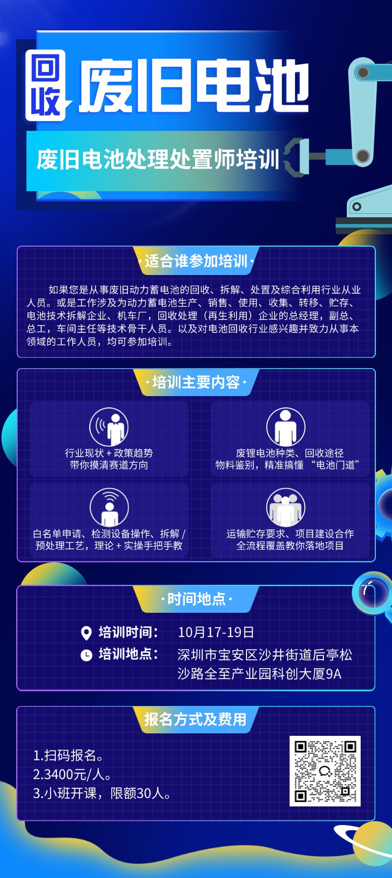 深圳市新能源汽车促进会正在开展废旧电池处理处置师培训