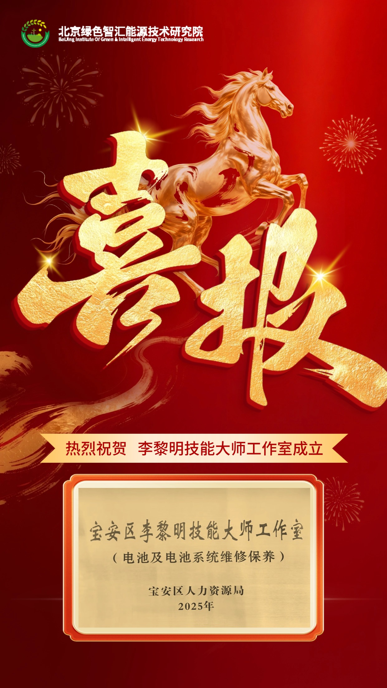 近日,北京绿色智汇能源技术研究院华南分院(深圳市新能源汽车促进会实训基地)传来重磅喜讯:教研专家李黎明老师领衔的“宝安区李黎明技能大师工作室(电池及电池系统维修保养方向)”,正式获深圳市宝安区人力资源局授牌认定。